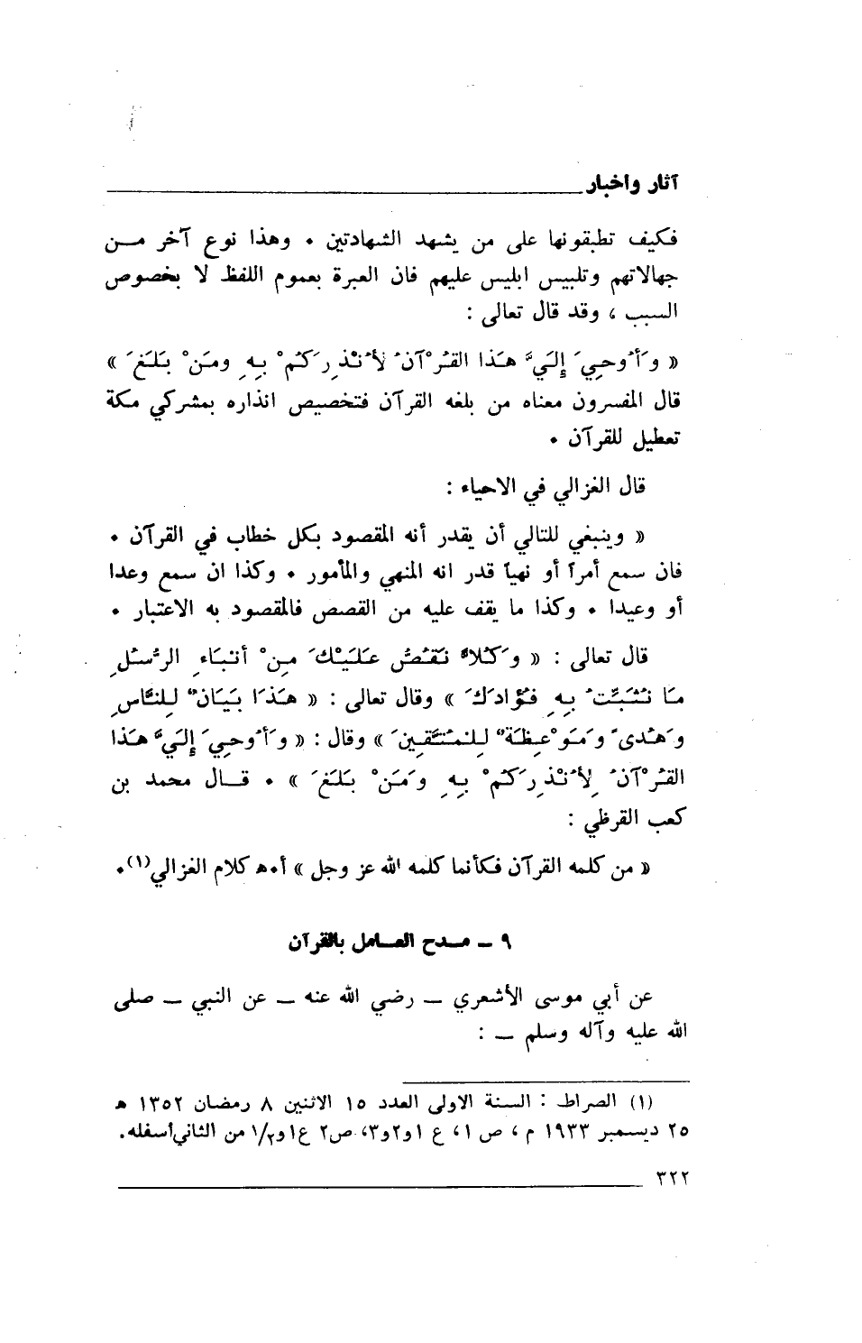 (1) الصراط: السنة الأولى العدد 15 الاثنين 8 رمضان 1352هـ 25 ديسمبر 1933م، ص1، ع 1 و2 و3، ص 2 ع1 و1/ 2 من الثاني أسفله.