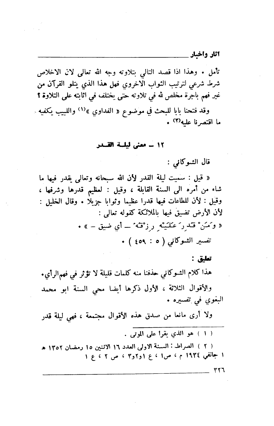 (2) الصراط: السنة الأولى العدد 16 الاثنين 15 رمضان 1352هـ 1 جانفي 1934م، ص 1، ع 1 و2 و3، ص 2، ع 1