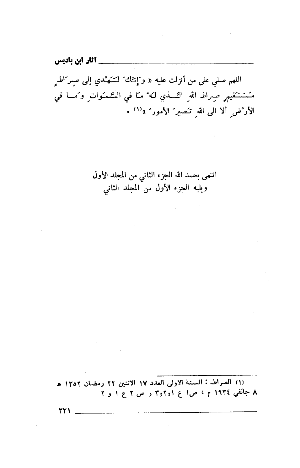 (1) الصراط: السنة الأولى العدد 17 الاثنين 22 رمضان 1352هـ