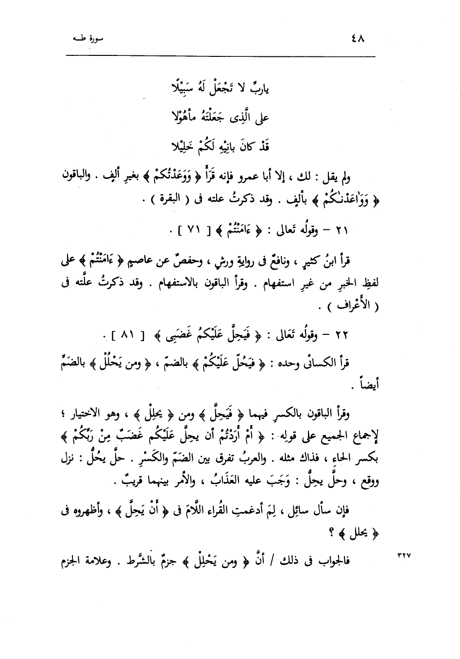 ٢٢ - وقوله تعالى: {فَيَحِلَّ عَلَيْكُمْ غَضَبِي} [٨١].
