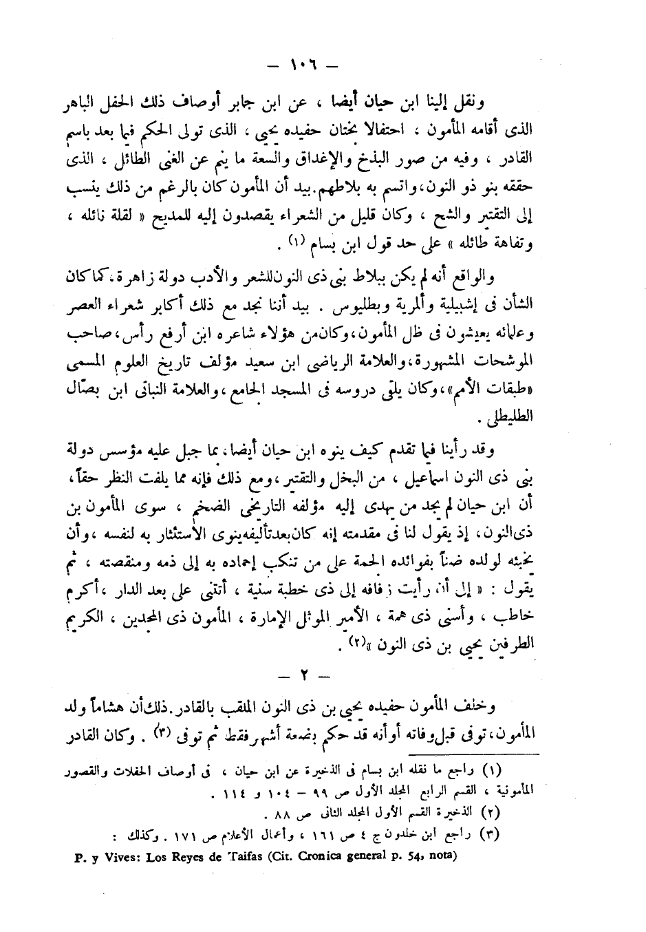 (¬1) راجع ما نقله ابن بسام في الذخيرة عن ابن حيان، في أوصاف الحفلات والقصور المأمونية، القسم الرابع المجلد الأول ص 99 - 104 و 114.