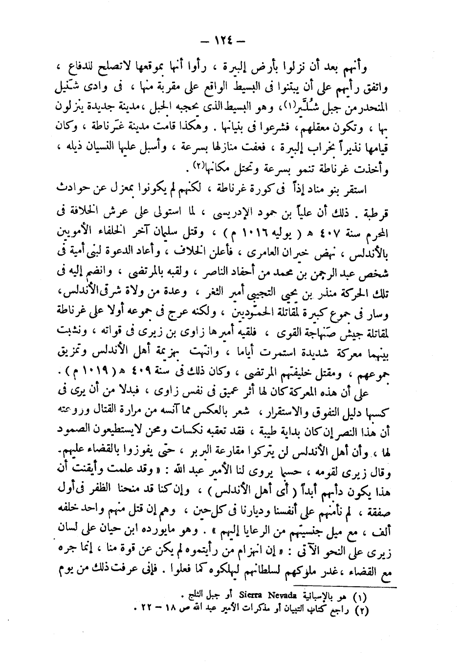وأنهم بعد أن نزلوا بأرض إلبيرة، رأوا أنها بموقعها لا تصلح للدفاع، واتفق رأيهم على أن يبتنوا في البسيط الواقع على مقربة منها، في وادي شَنيل المنحدر من جبل شُلَّير (¬1)، وهو البسيط الذي يحجبه الجبل، مدينة جديدة ينزلون بها، وتكون معقلهم، فشرعوا في بنيانها. وهكذا قامت مدينة غَرناطة، وكان قيامها نذيراً بخراب إلبيرة، فعفت منازلها بسرعة، وأسبل عليها النسيان ذيله، وأخذت غرناطة تنمو بسرعة وتحتل مكانها (¬2).