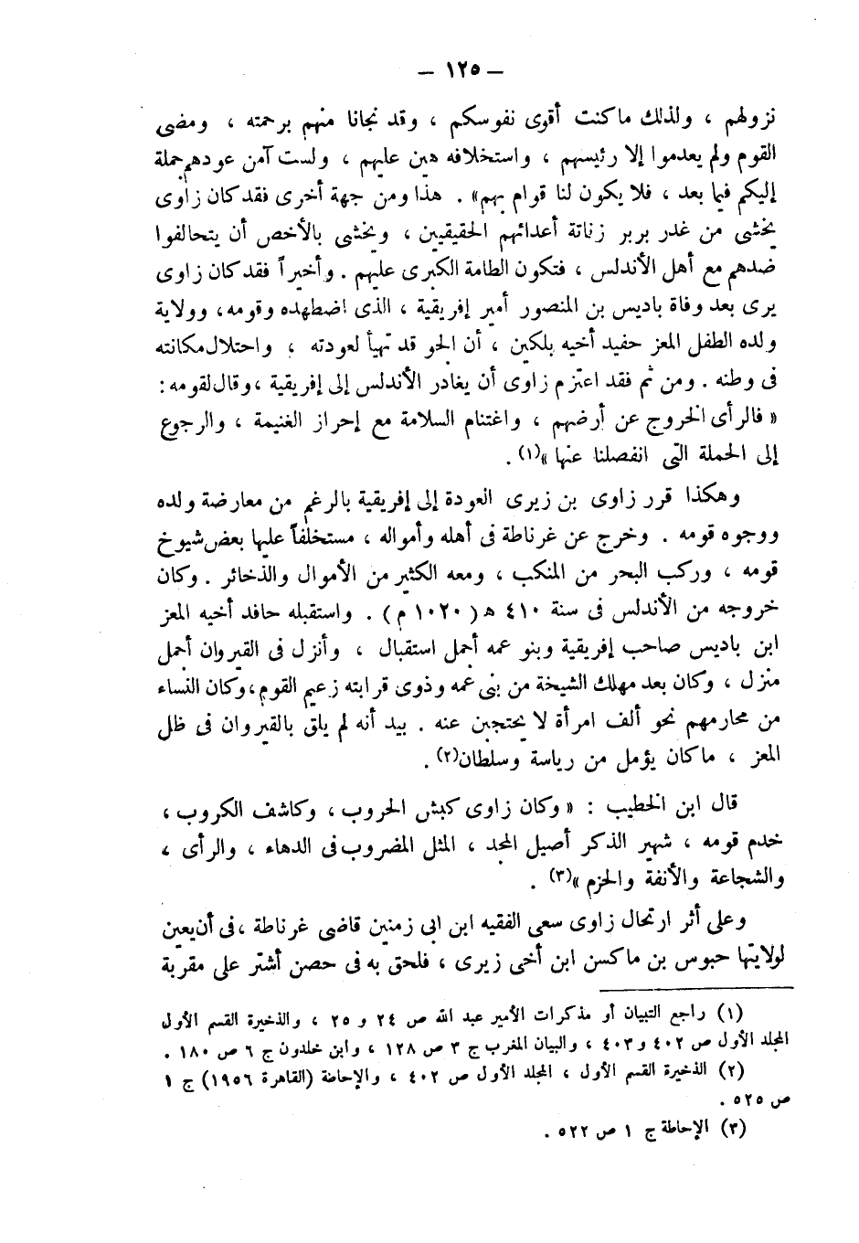 (¬1) راجع التبيان أو مذكرات الأمير عبد الله ص 24 و 25، والذخيرة القسم الأول المجلد الأول ص 402 و 403، والبيان المغرب ج 3 ص 128، وابن خلدون ج 6 ص 180.