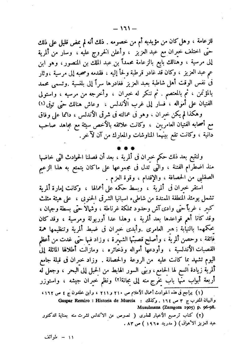 (¬1) يراجع في هذه الحوادث أعمال الأعلام ص 210 و 211، وابن خلدون ج 4 ص 162، والبيان المغرب ج 3 ص 164. وكذلك: Gaspar Remiro: Historia de Murcia Musulmana (Zaragoza 1905) p. 96-98.
