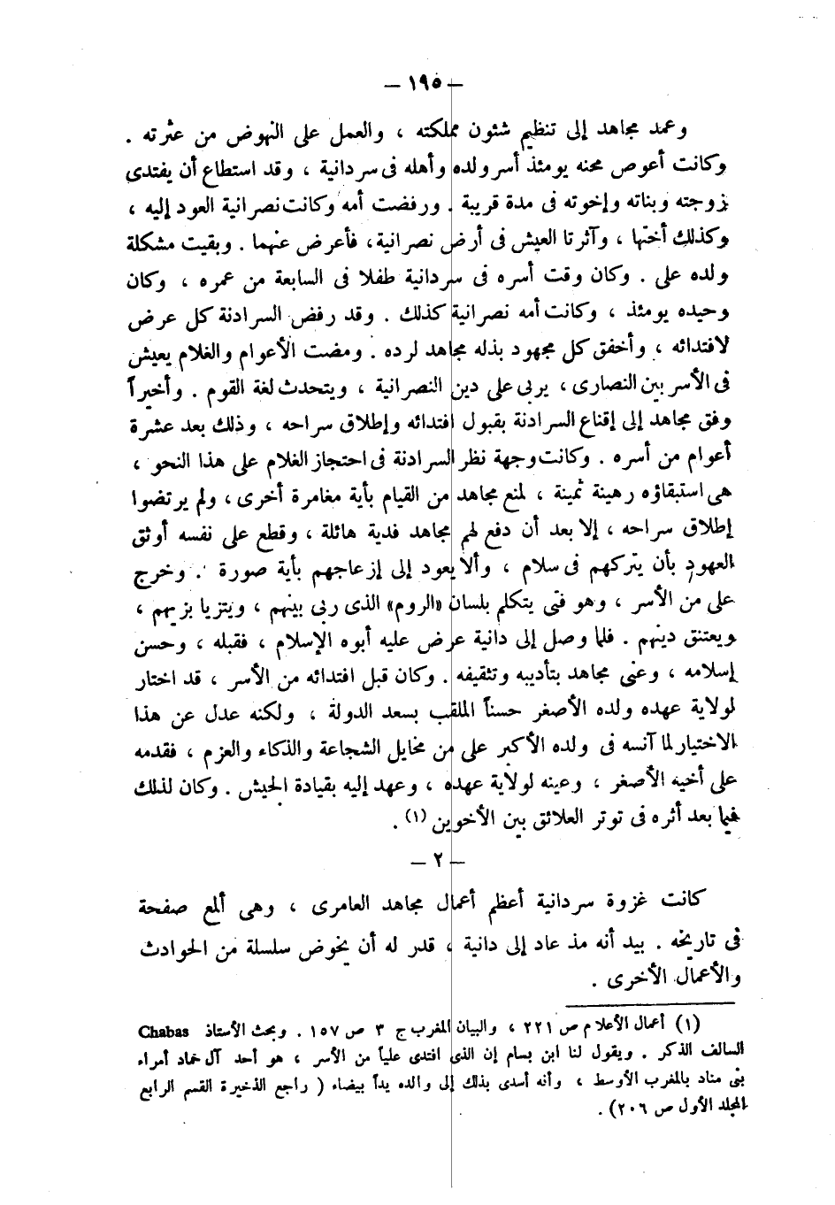 (¬1) أعمال الأعلام ص 221، والبيان المغرب ج 3 ص 157. وبحث الأستاذ Chabas السالف الذكر. ويقول لنا ابن بسام إن الذي افتدى علياً من الأسر، هو أحد آل حماد أمراء بني مناد بالمغرب الأوسط، وأنه أسدى بذلك إلى والده يداً بيضاء (راجع الذخيرة القسم الرابع المجلد الأول ص 206).
