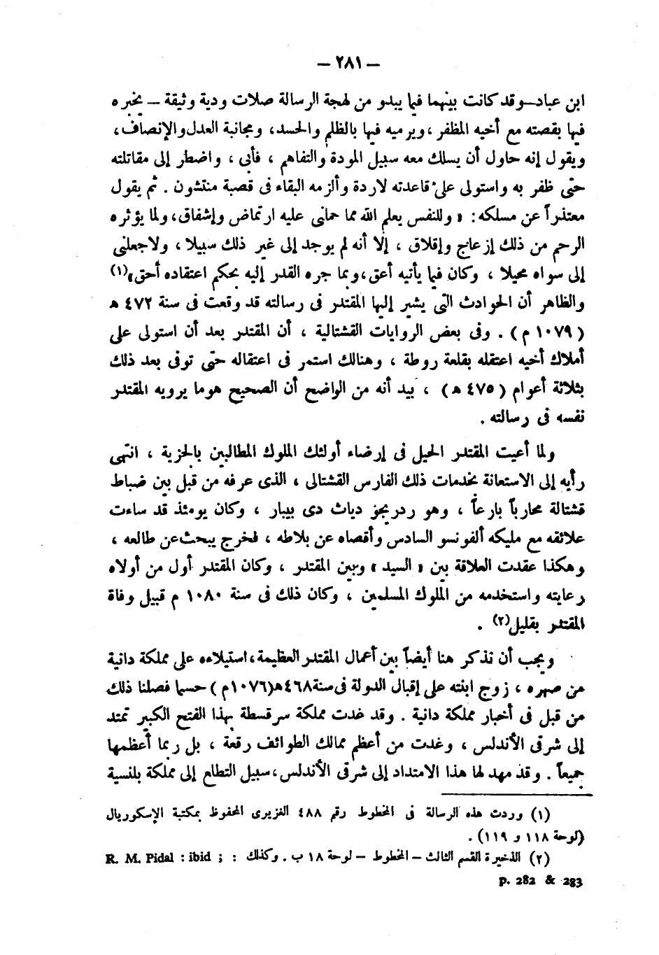 (¬2) الذخيرة القسم الثالث - المخطوط - لوحة 18 ب. وكذلك: R. M Pidal: ibid;p. 282 & 283