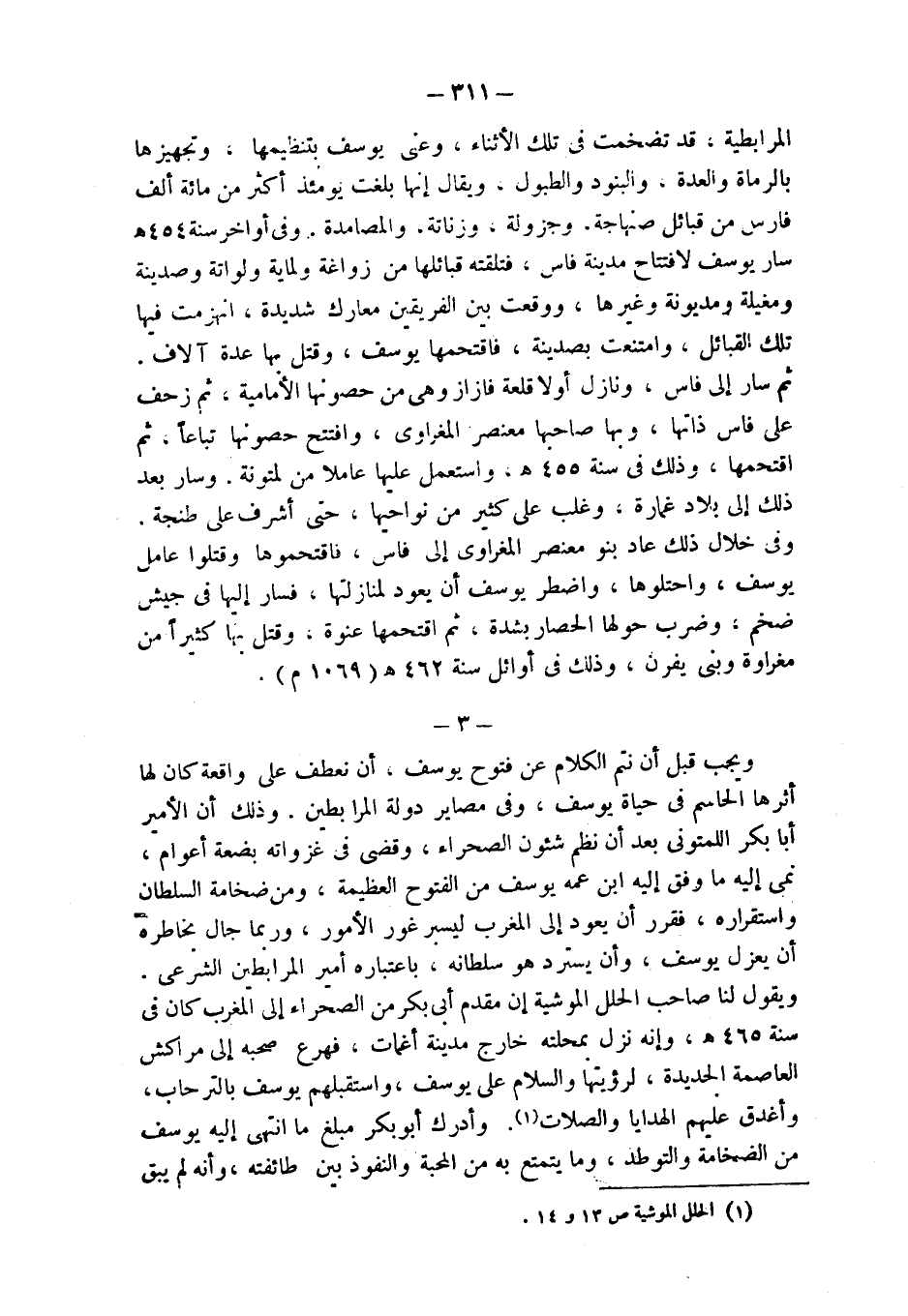 المرابطية، قد تضخمت في تلك الأثناء، وعنى يوسف بتنظيمها، وتجهيزها بالرماة والعدة، والبنود والطبول، ويقال إنها بلغت يومئذ أكثر من مائة ألف فارس من قبائل صنهاجة، وجزولة، وزناتة، والمصامدة. وفي أواخر سنة 454 هـ سار يوسف لافتتاح مدينة فاس، فتلقته قبائلها من زواغة ولماية ولواتة وصدينة ومغيلة ومديونة وغيرها، ووقعت بين الفريقين معارك شديدة، انهزمت فيها تلك القبائل، وامتنعت بصدينة، فاقتحمها يوسف، وقتل منها عدة آلاف.