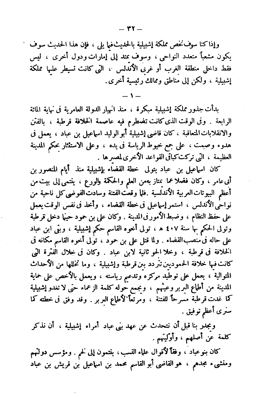 ويجدر بنا قبل أن نتحدث عن عهد بني عباد أمراء إشبيلية، أن نذكر كلمة عن أصلهم، وأوّليتهم.