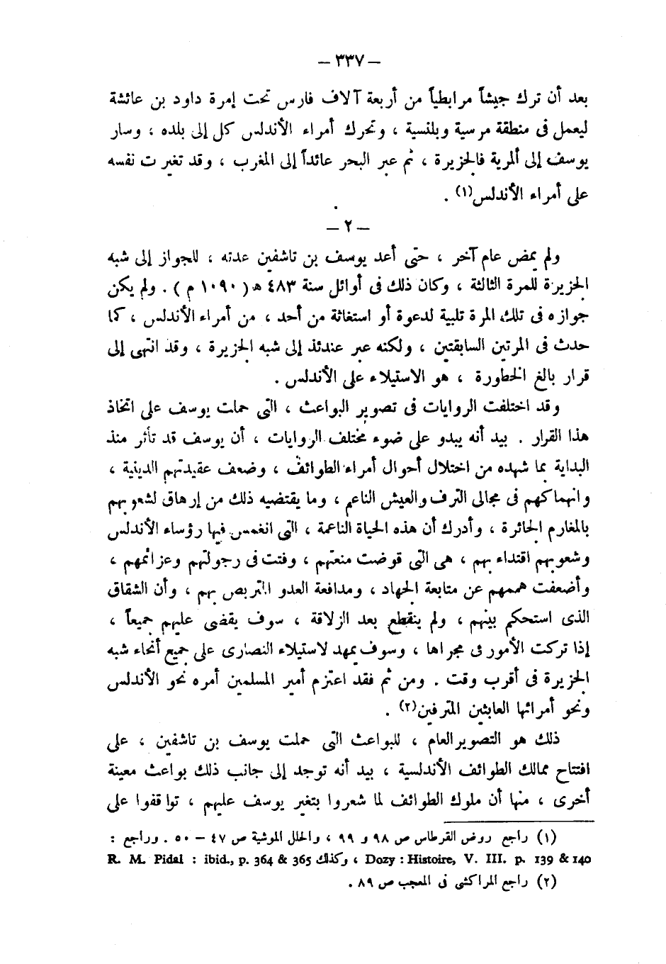 (¬1) راجع روض القرطاس ص 98 و 99، والحلل الموشية ص 47 - 50. وراجع: Dozy: Histoire, V.III.p. 139 & 140، وكذلك R.M.Pidal: ibid ; p. 364 & 365.