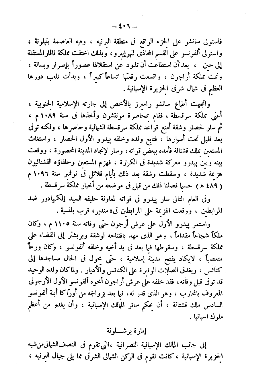 واستمر بيدرو الأول على عرش أرجون حتى وفاته سنة 1105 م، وكان ملكاً شجاعاً مقداماً، وهو الذي مهد بافتتاحه لوشقة وبربشتر إلى القضاء على مملكة سرقسطة، وسقوطها فيما بعد في يد أخيه وخلفه ألفونسو، وكان ورعاً متعصباً، لا يكاد يفتح مدينة إسلامية، حتى يحول في الحال مساجدها إلى كنائس، ويغدق الصلات الوفيرة على الكنائس والأديار. ولما كان ولده الوحيد قد توفي قبل وفاته، فقد خلفه على عرش أراجون أخوه ألفونسو الأول الأرجوني المعروف بالمحارب، وهو الذي قدر له، فيما بعد بزواجه من أورّاكا ابنة ألفونسو السادس ملك قشتالة، أن يحكم سائر الممالك الإسبانية، وأن يغدو من أعظم ملوك اسبانيا.