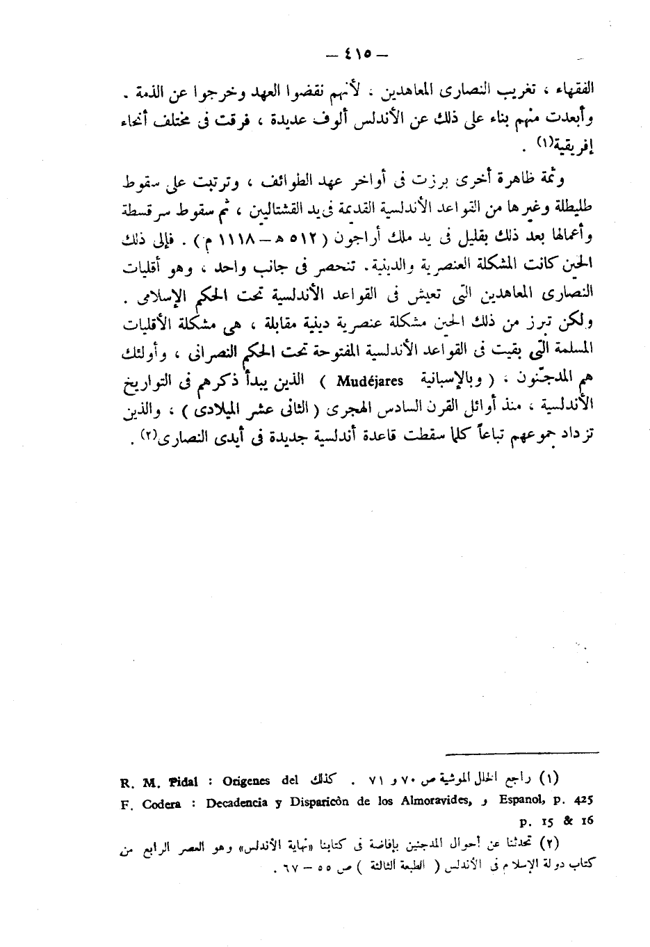(¬2) تحدثنا عن أحوال المدجنين بإفاضة في كتابنا " نهاية الأندلس " وهو العصر الرابع من كتاب دولة الإسلام في الأندلس (الطبعة الثالثة) ص 55 - 67.