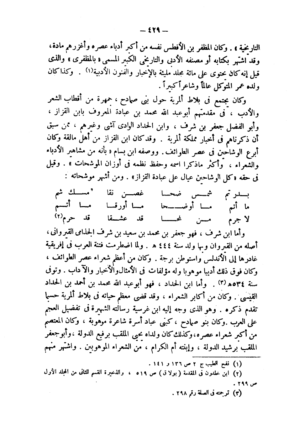 (¬2) ابن خلدون في المقدمة (بولاق) ص 519، والذخيرة القسم الثاني من المجلد الأول ص 299.