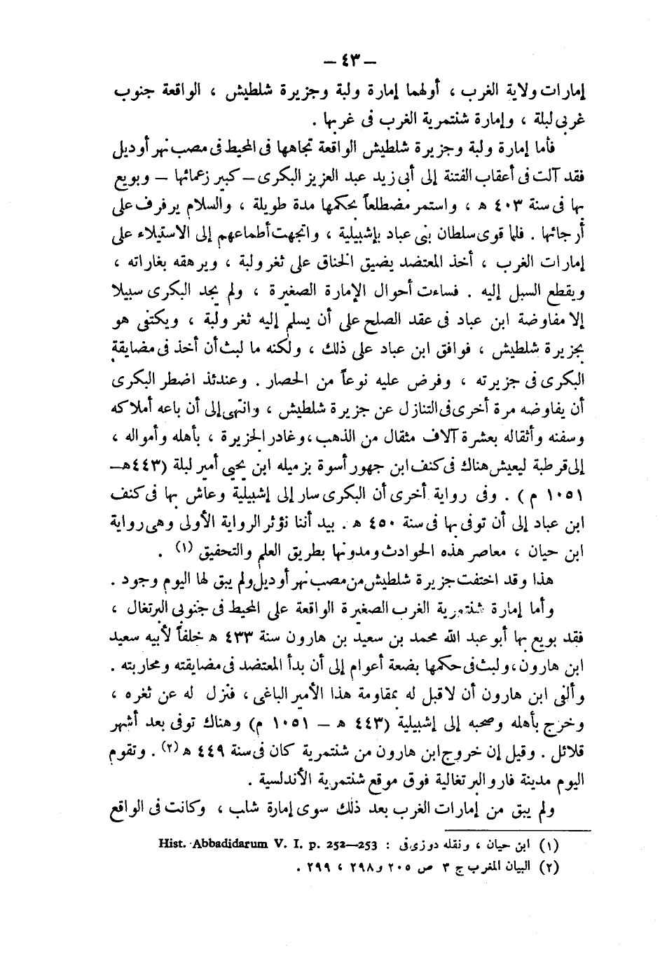(¬1) ابن حيان، ونقله دوزي في: Hist.Abbadidarum V.I.p. 252-253