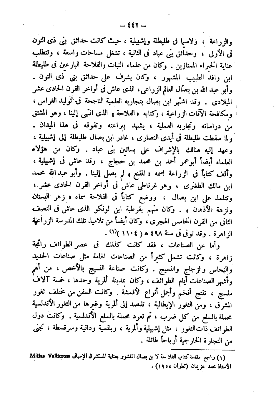 (¬1) راجع مقدمة كتاب الفلاحة لابن بصّال المنشور بعناية المستشرق الإسباني Millas Vallicross الأستاذ محمد عزيمان (تطوان 1955).