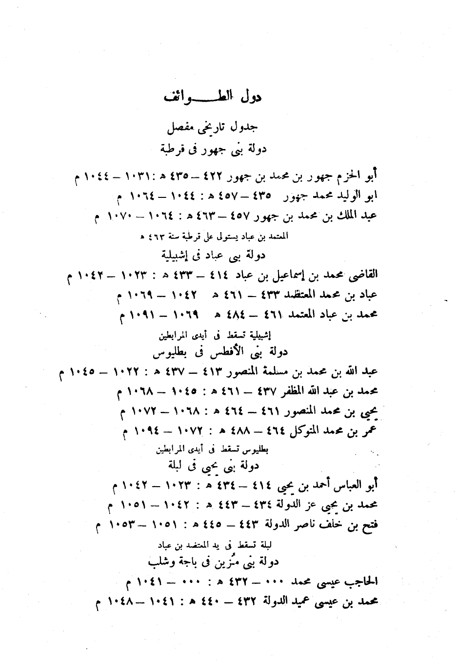 جدول تاريخي مفصل دولة بني جهور في قرطبة