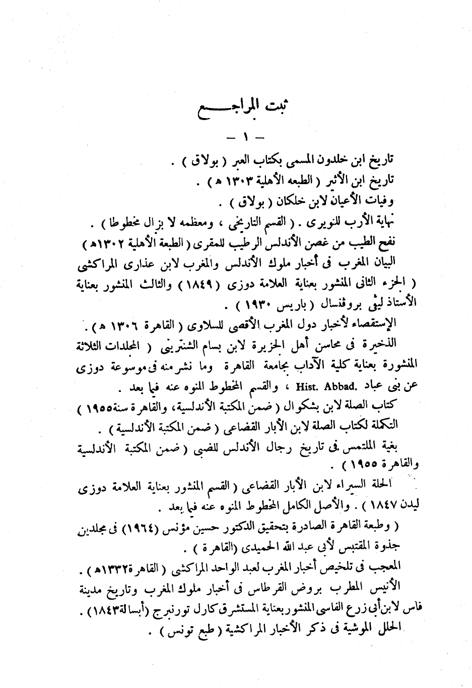 البيان المغرب في أخبار ملوك الأندلس والمغرب لابن عذارى المراكشي (الجزء الثاني المنشور بعناية العلامة دوزي (1849) والثالث المنشور بعناية الأستاذ ليفي بروفنسال (باريس 1930).