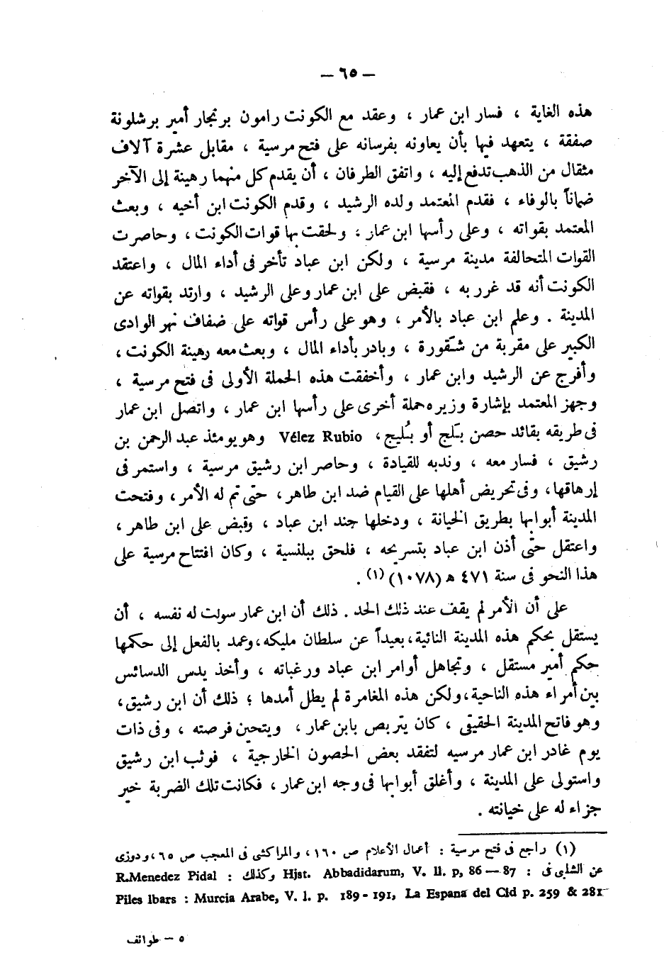 (¬1) راجع في فتح مرسية: أعمال الأعلام ص 160، والمراكشي في المعجب ص 65، ودوزي عن الشلبي في: Hist.Abbadidarum, V. II. p,86-87. وكذلك: R.Menendez Pidal: Piles Ibars: Murcia Arabe, V.I.p. 189-191, La Espana del Cid p. 259 & 281