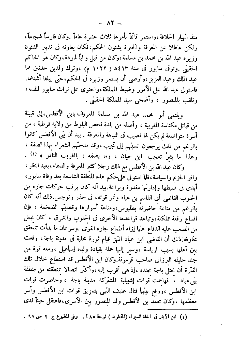 (¬1) ابن الأبار في الحلة السيراء (المخطوط) لوحة 85 أ. وفي المطبوع ج 2 ص 97.