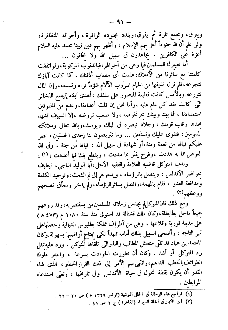 (¬1) تراجع هذه الرسالة في الحلل الموشية (تونس 1329 هـ) ص 20 - 22.