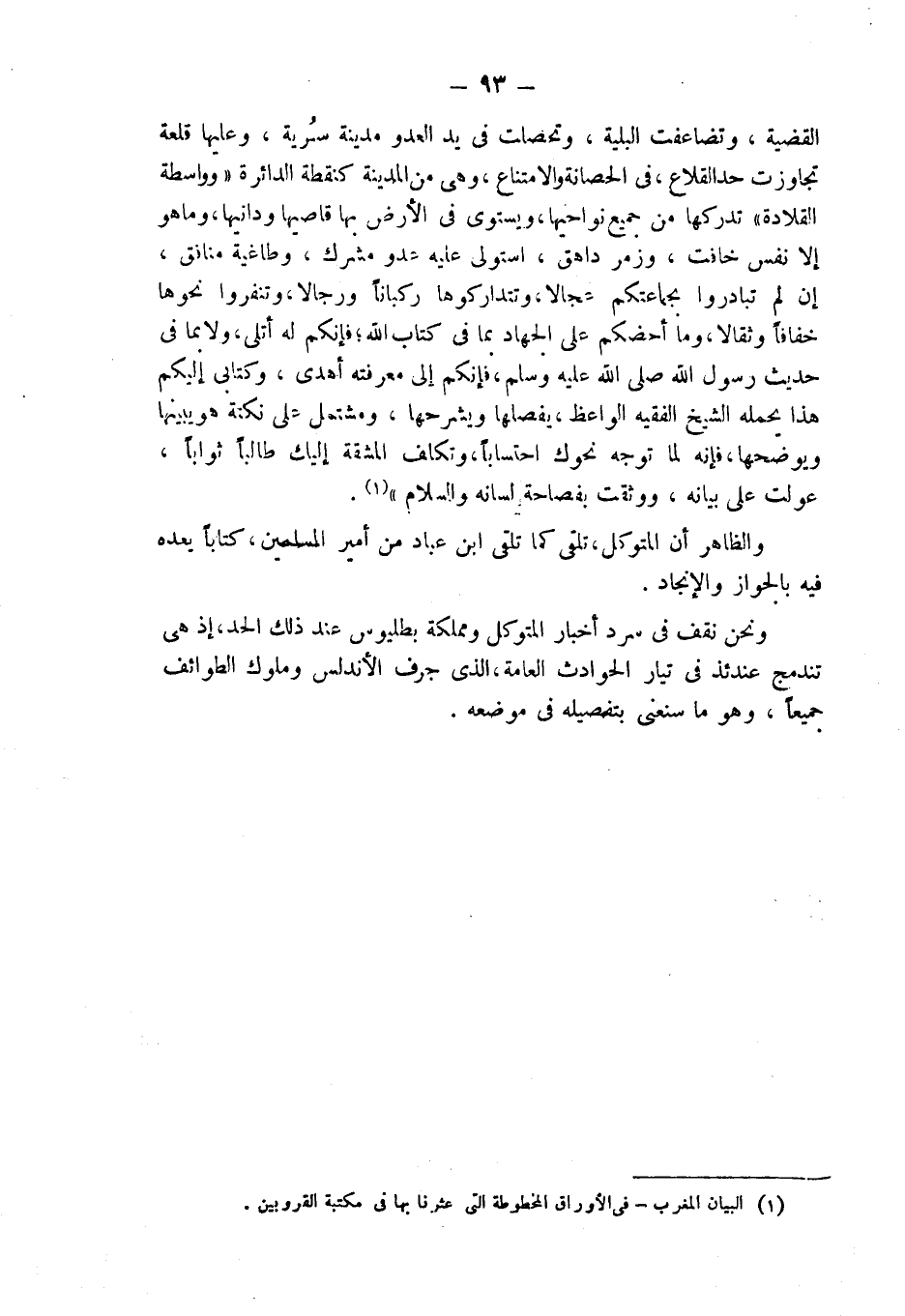 (¬1) البيان المغرب - في الأوراق المخطوطة التي عثرنا بها في مكتبة القرويين.