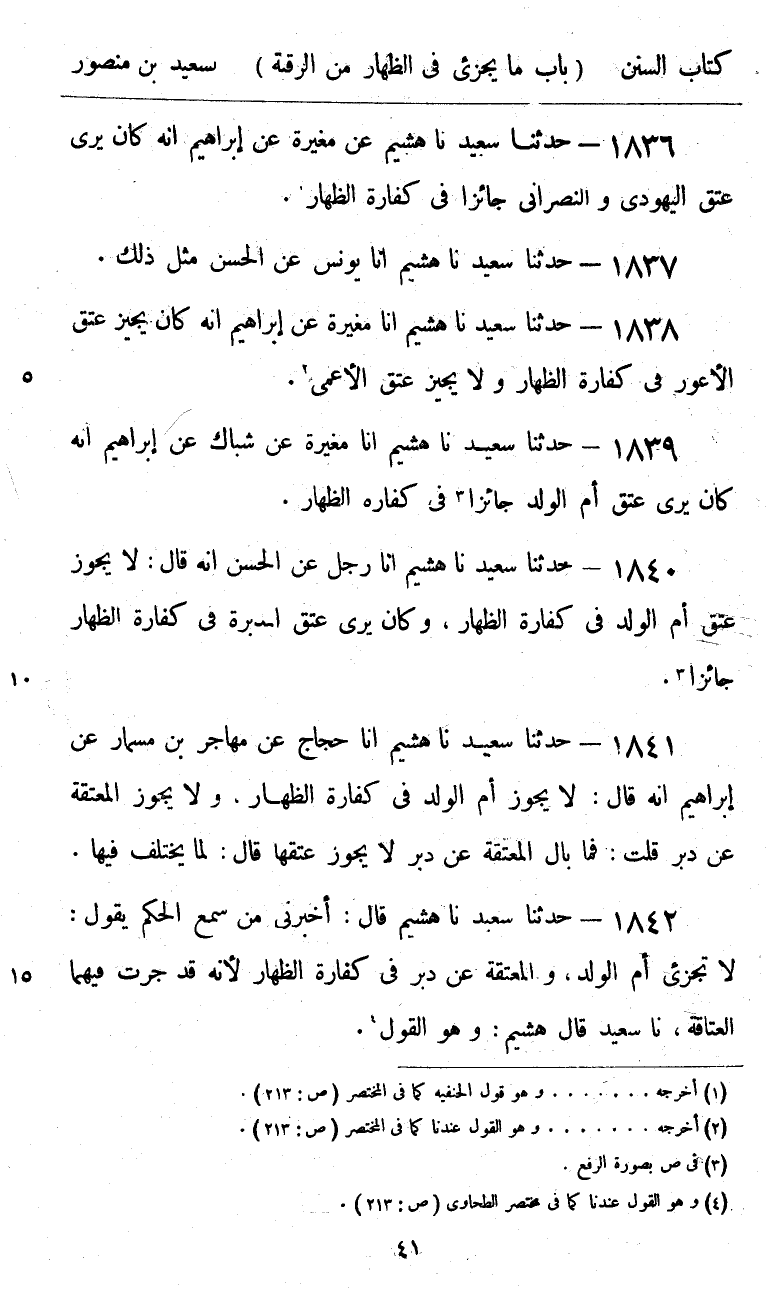 1839 - حَدَّثَنَا سَعِيدٌ، نا هُشَيْمٌ، أنا مُغِيرَةُ، عَنْ شِبَاكٍ، عَنْ إِبْرَاهِيمَ «أَنَّهُ كَانَ يَرَى §عِتْقَ أُمِّ الْوَلَدِ جَائِزًا فِي كَفَّارَةِ الظِّهَارِ»