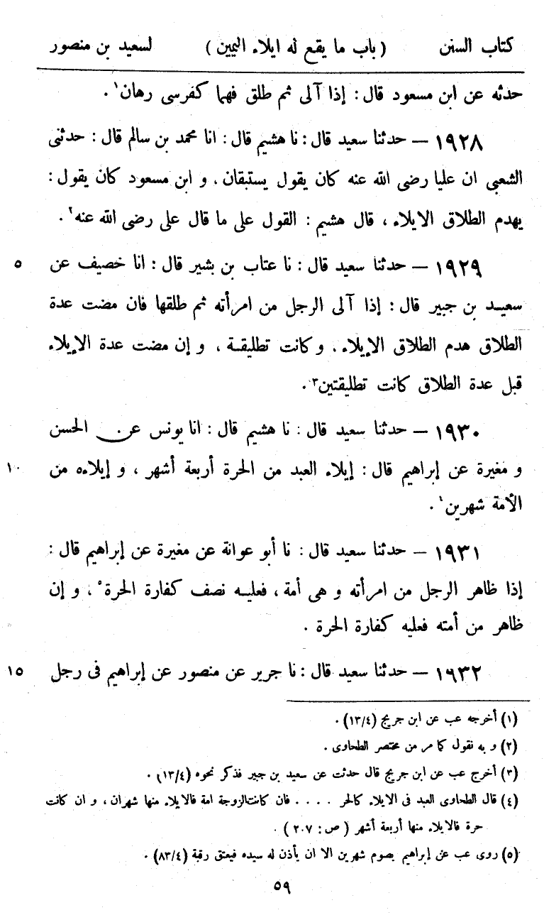 1930 - حَدَّثَنَا سَعِيدٌ قَالَ: نا هُشَيْمٌ، قَالَ: أنا يُونُسُ، عَنِ الْحَسَنِ، وَمُغِيرَةَ، عَنْ إِبْرَاهِيمَ، قَالَ: «§إِيلَاءُ الْعَبْدِ مِنَ الْحُرَّةِ أَرْبَعَةُ أَشْهُرٍ، وَإِيَلَاؤُهُ مِنَ الْأَمَةِ شَهْرَيْنِ»