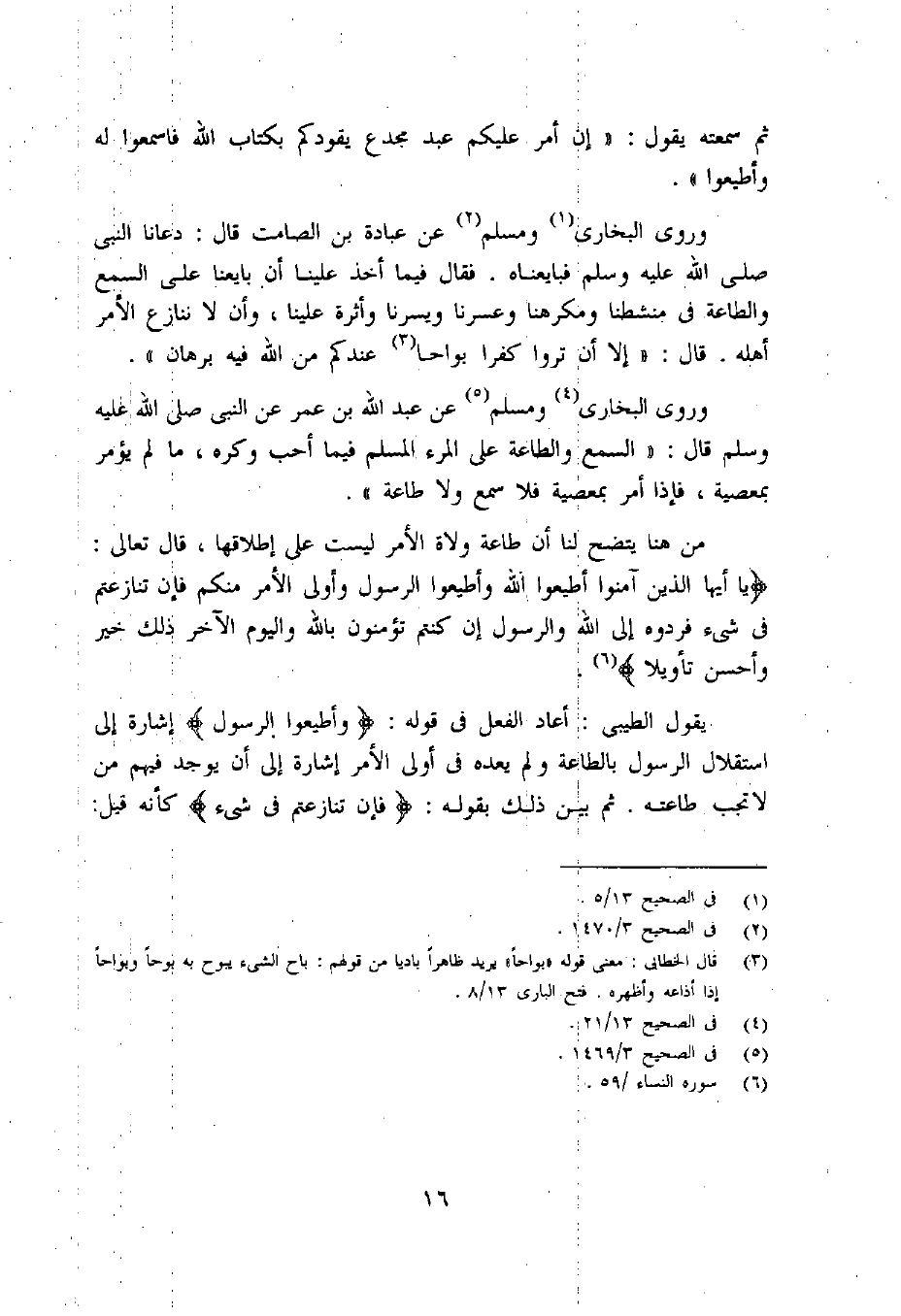 يا أَيُّهَا الَّذِينَ آمَنُوا أَطِيعُوا اللَّهَ وأَطِيعُوا الرَّسُولَ وأُولِي الْأَمْرِ مِنْكُمْ فَإِنْ تَنازَعْتُمْ فِي شَيْءٍ فَرُدُّوهُ إِلَى اللَّهِ والرَّسُولِ إِنْ كُنْتُمْ تُؤْمِنُونَ بِاللَّهِ والْيَوْمِ الْآخِرِ ذلِكَ خَيْرٌ وأَحْسَنُ تَأْوِيلًا «6».