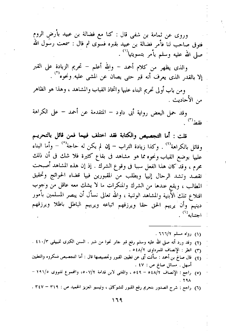 (6) راجع: شرح الصدور بتحريم رفع القبور للشوكانى، وتيسير العزيز الحميد ص: 319 - 347.
