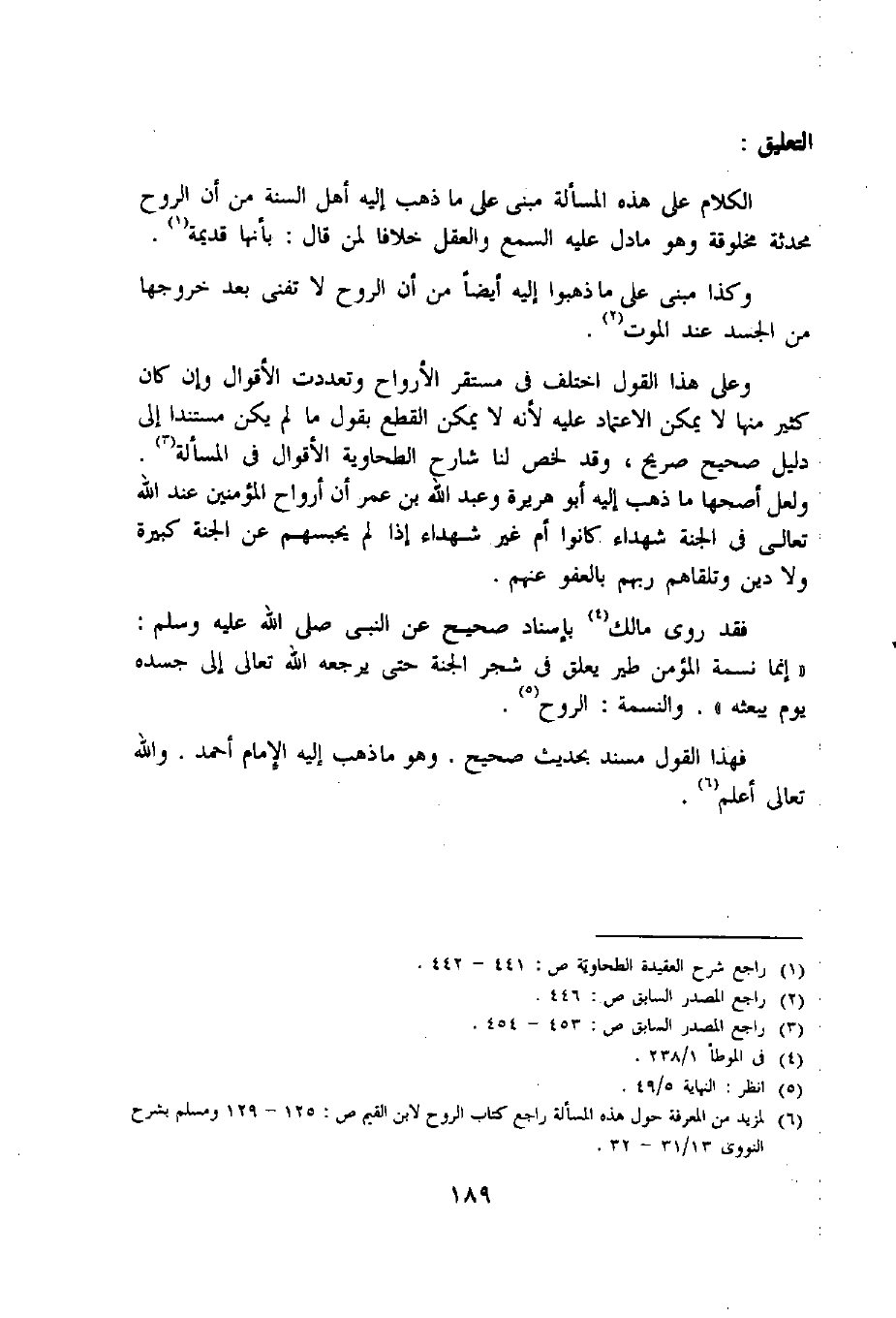 (6) لمزيد من المعرفة حول هذه المسألة راجع كتاب الروح لابن القيم ص: 125 - 129 ومسلم بشرح النووى 13/ 31 - 32.