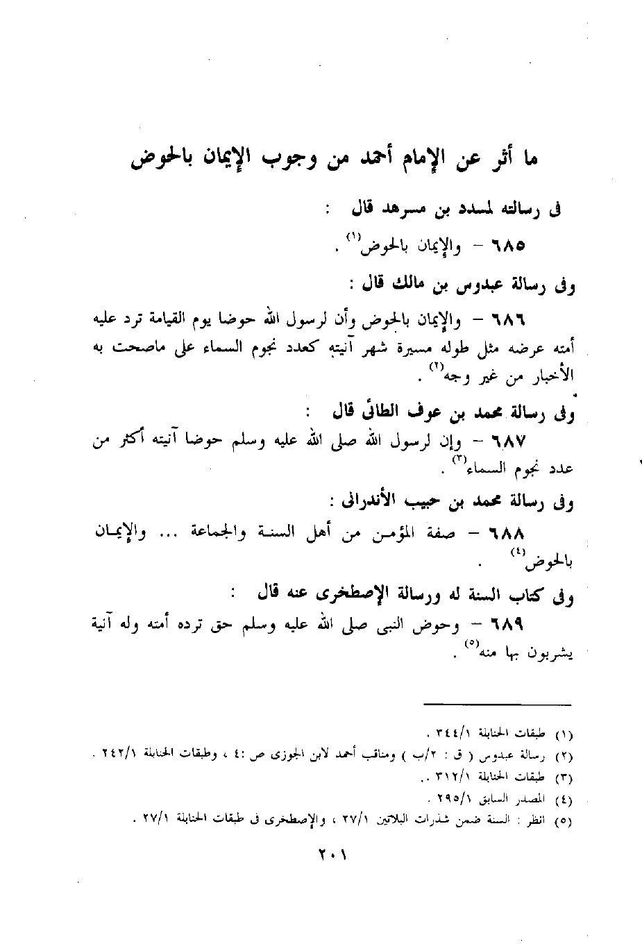 (5) انظر: السنة ضمن شذرات البلاتين 1/ 27، والإصطخرى فى طبقات الحنابلة 1/ 27.