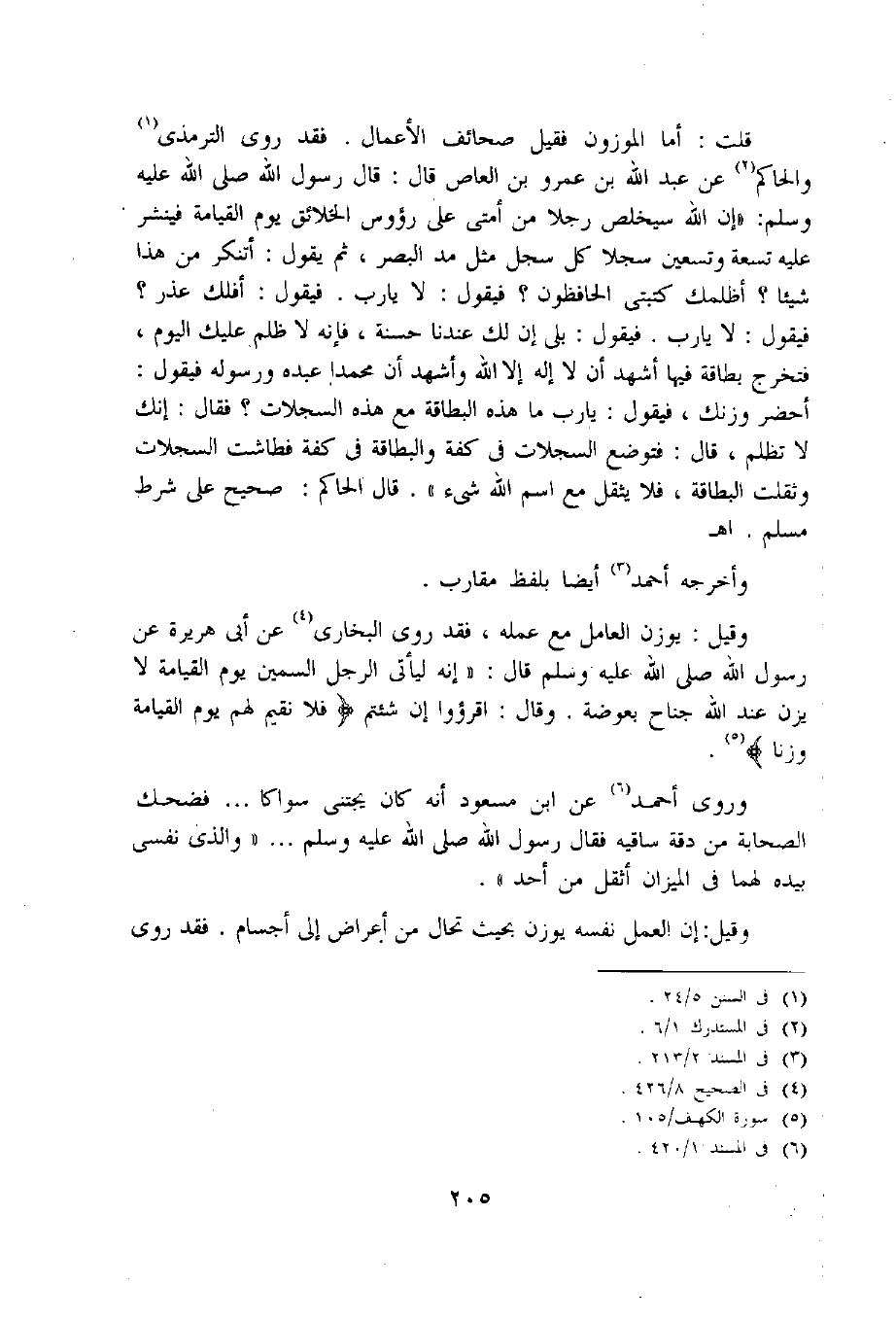 وروى أحمد «6» عن ابن مسعود أنه كان يجتنى سواكا ... فضحك الصحابة من دقة ساقيه فقال رسول اللّه صلى اللّه عليه وسلم ... «و الّذي نفسى بيده لهما فى الميزان أثقل من أحد».
