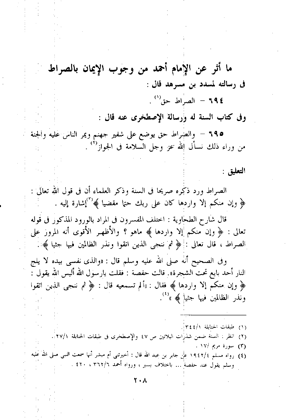 ما أثر عن الإمام أحمد من وجوب الإيمان بالصراط