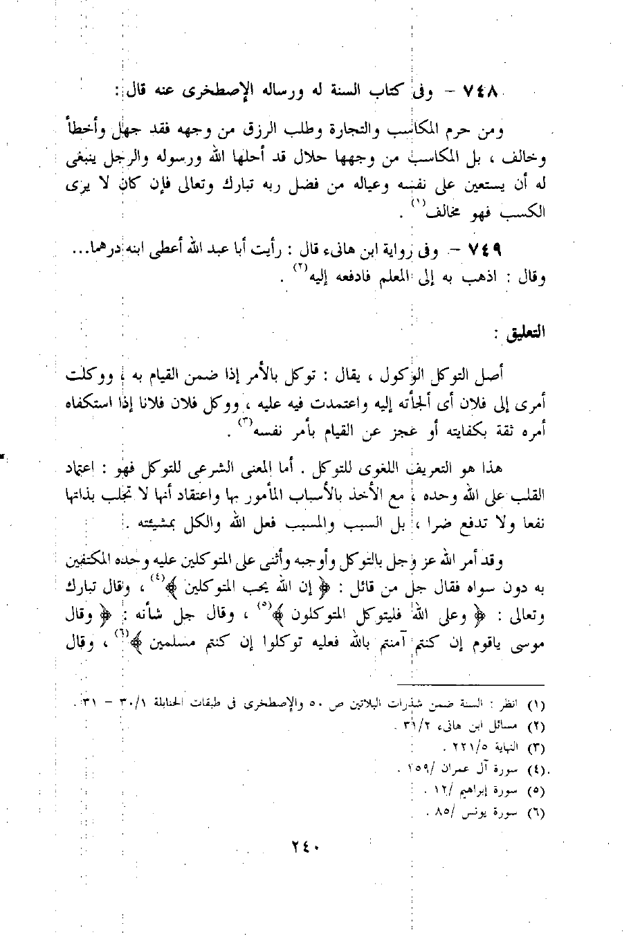748 - وفى كتاب السنة له ورساله الإصطخرى عنه قال: