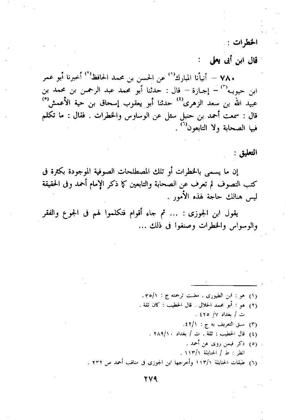 إن ما يسمى بالخطرات أو تلك المصطلحات الصوفية الموجودة بكثرة فى كتب التصوف لم تعرف عن الصحابة والتابعين كما ذكر الإمام أحمد وفى الحقيقة ليس هنالك حاجة لهذه الأمور.