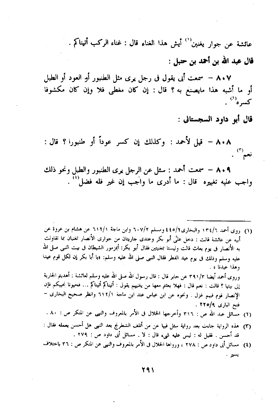 807 - سمعت أبى يقول فى رجل يرى مثل الطنبور أو العود أو الطبل أو ما أشبه هذا ما يصنع به؟ قال: إن كان مغطى فلا وإن كان مكشوفا كسره «2».