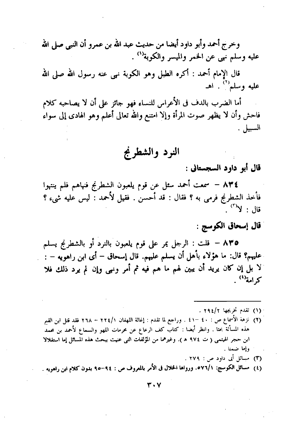 835 - قلت: الرجل يمر على قوم يلعبون بالنرد أو بالشطرنج يسلم عليهم؟ قال: ما هؤلاء بأهل أن يسلم عليهم. قال إسحاق- أى ابن راهويه-: