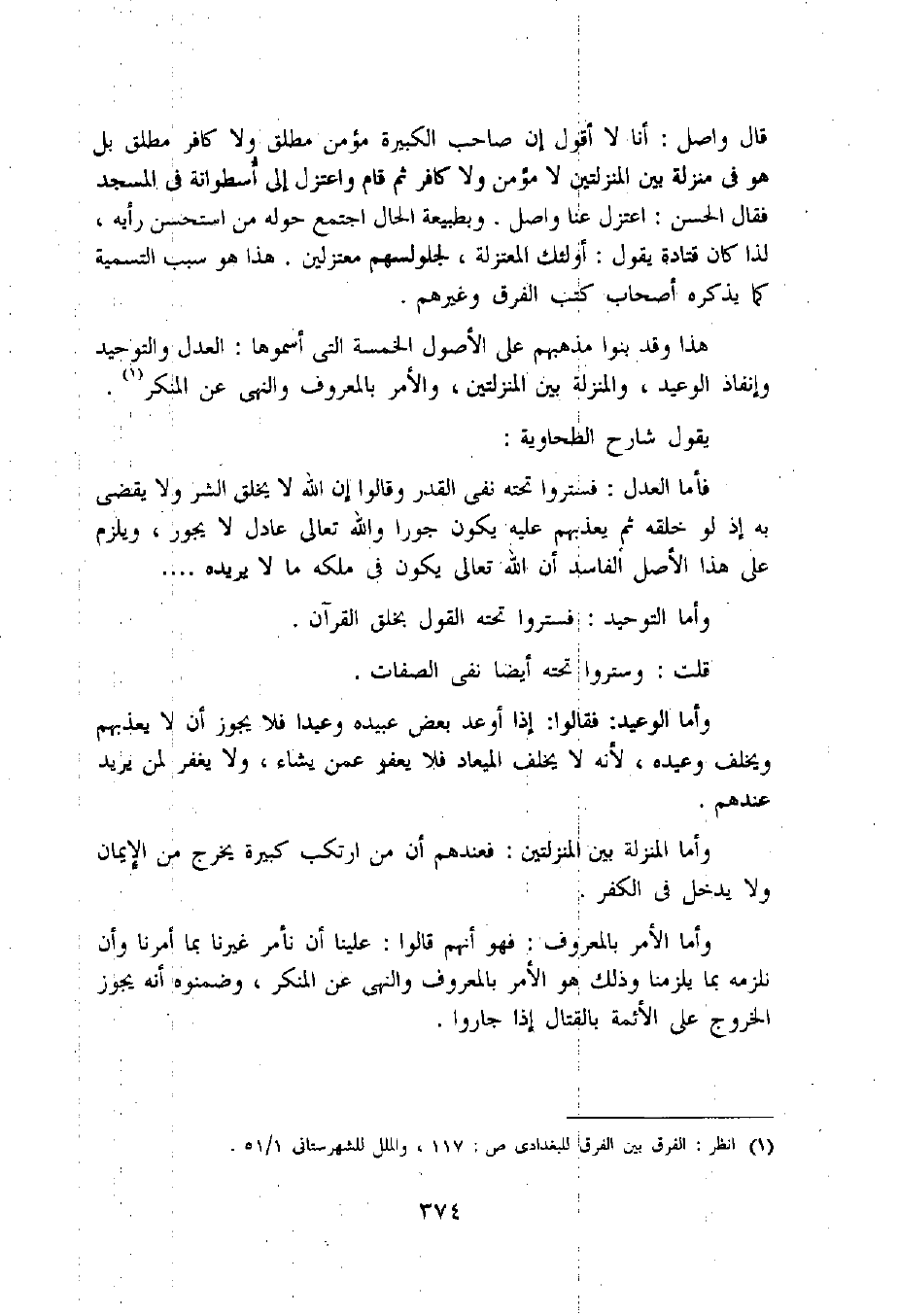 (1) انظر: الفرق بين الفرق للبغدادى ص: 117، والملل للشهرستانى 1/ 51.