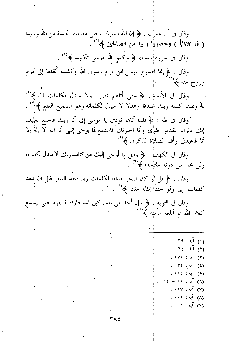 وقال: قُلْ لَوْ كانَ الْبَحْرُ مِداداً لِكَلِماتِ رَبِّي لَنَفِدَ الْبَحْرُ قَبْلَ أَنْ تَنْفَدَ كَلِماتُ رَبِّي ولَوْ جِئْنا بِمِثْلِهِ مَدَداً «8».