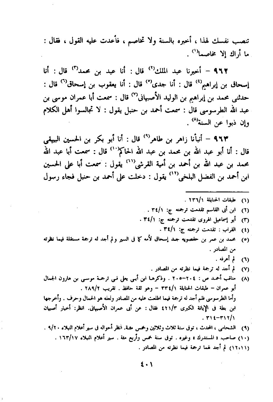 963 - أنبأنا زاهر بن طاهر «9» قال: أنا أبو بكر بن الحسين البيهقى قال: أنا أبو عبد اللّه بن محمد بن عبد اللّه الحاكم «10» قال: سمعت أبا عبد اللّه محمد بن عبد اللّه بن أحمد بن أمية القرشى «11» يقول: سمعت أبا على الحسين ابن أحمد بن الفضل البلخى «12» يقول: دخلت على أحمد بن حنبل فجاء رسول