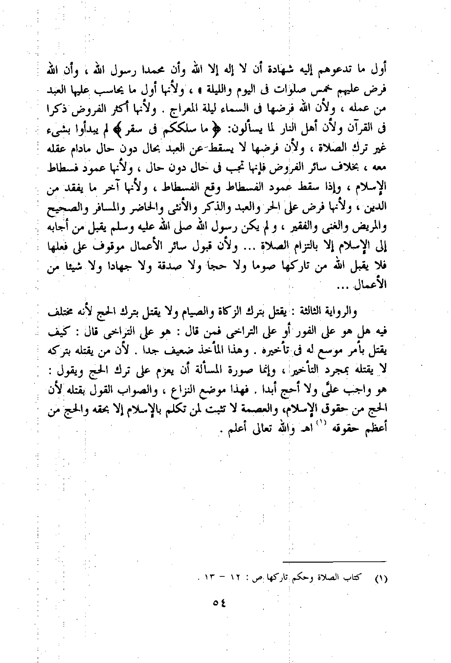 (1) كتاب الصلاة وحكم تاركها ص: 12 - 13.