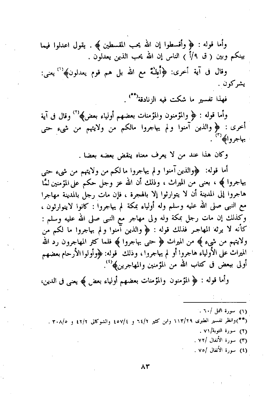 وأما قوله: والْمُؤْمِنُونَ والْمُؤْمِناتُ بَعْضُهُمْ أَوْلِياءُ بَعْضٍ «3» وقال فى آية أخرى: والَّذِينَ آمَنُوا ولَمْ يُهاجِرُوا ما لَكُمْ مِنْ وَلايَتِهِمْ مِنْ شَيْءٍ حَتَّى يُهاجِرُوا «4».