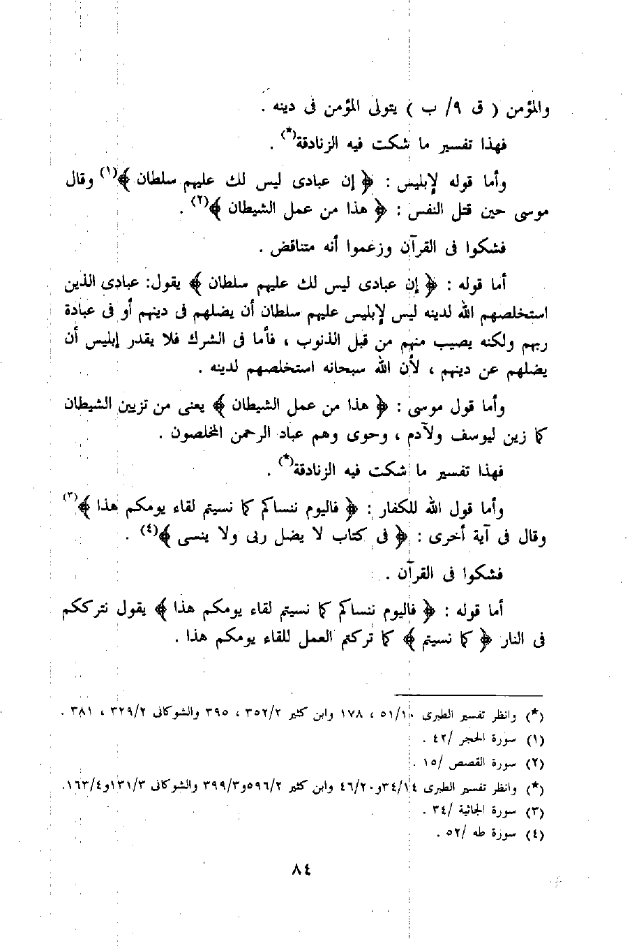 (4) وانظر تفسير الطبرى 14/ 34 و20/ 46 وابن كثير 2/ 596 و3/ 399 والشوكانى 3/ 131 و4/ 163.