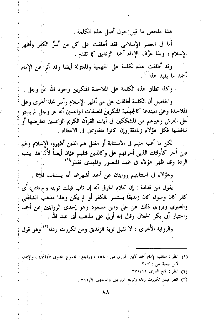 لكن ما أعنيه منهم فى الاستتابة أو القتل هم الذين أظهروا الإسلام ولهم دين آخر كأولئك الذين أحرقهم على وكالذين قتلهم عثمان أيضا لأن هذا يشبه الردة وقد ظهر هؤلاء فى عهد المنصور والمهدى فقتلوا «2».