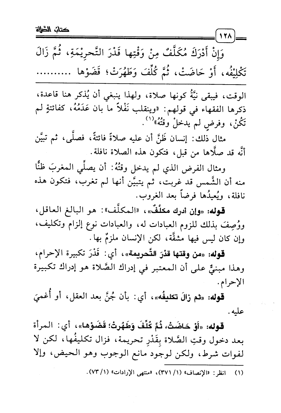 (¬1) انظر: «الإنصاف» (1/ 371)، «منتهى الإرادات» (1/ 73)