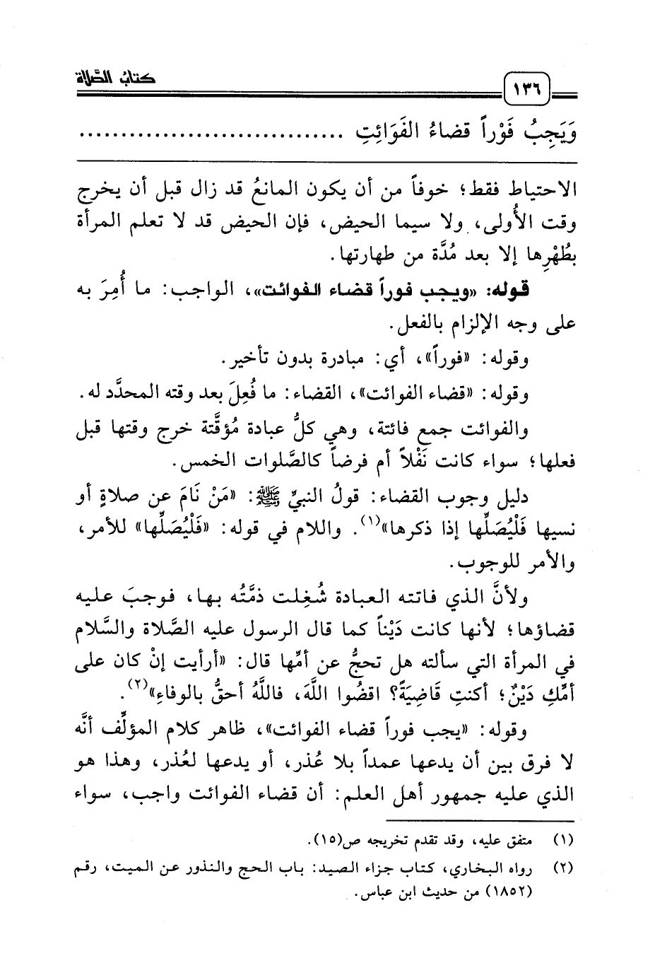 وَيَجِبُ فَوْراً قضاءُ الفَوَائِتِ ...........