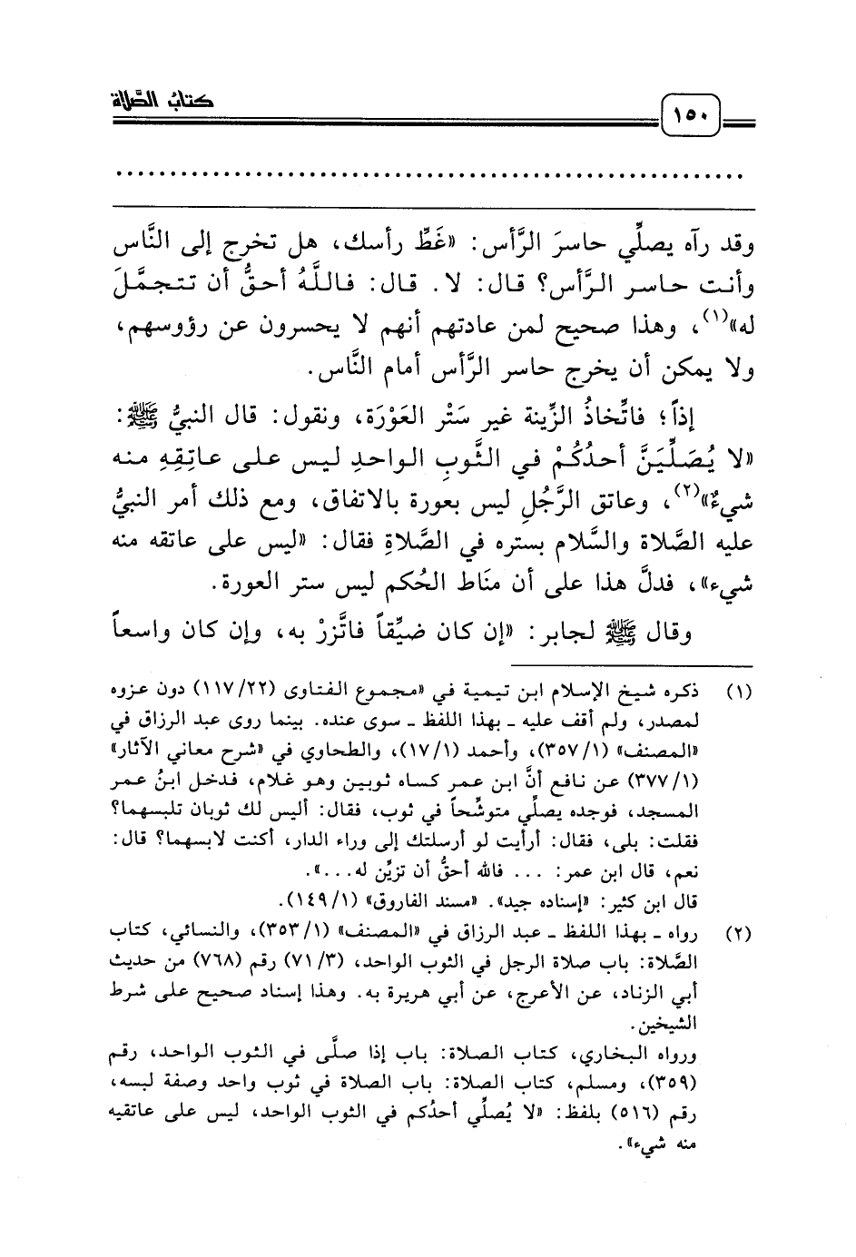 (¬2) رواه ـ بهذا اللفظ ـ عبد الرزاق في «المصنف» (1/ 353)، والنسائي، كتاب الصَّلاة: باب صلاة الرجل في الثوب الواحد، (3/ 71) رقم (768) من حديث أبي الزناد، عن الأعرج، عن أبي هريرة به. وهذا إسناد صحيح على شرط الشيخين.