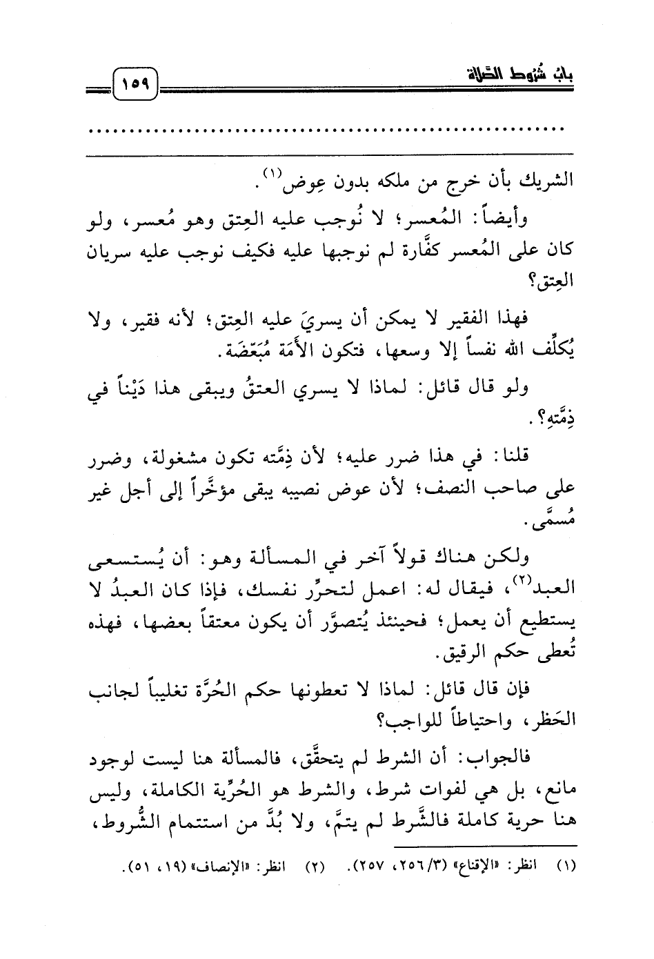 فالجواب: أن الشرط لم يتحقَّق، فالمسألة هنا ليست لوجود مانع، بل هي لفوات شرط، والشرط هو الحُرِّية الكاملة، وليس هنا حرية كاملة فالشَّرط لم يتمَّ، ولا بُدَّ من استتمام الشُّروط،