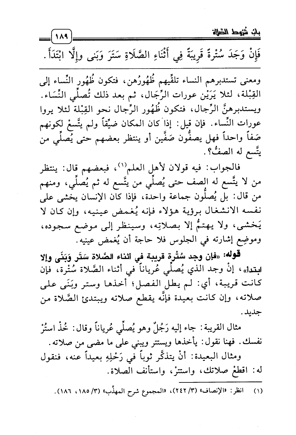 (¬1) انظر: «الإنصاف» (3/ 242)، «المجموع شرح المهذَّب» (3/ 185، 186).