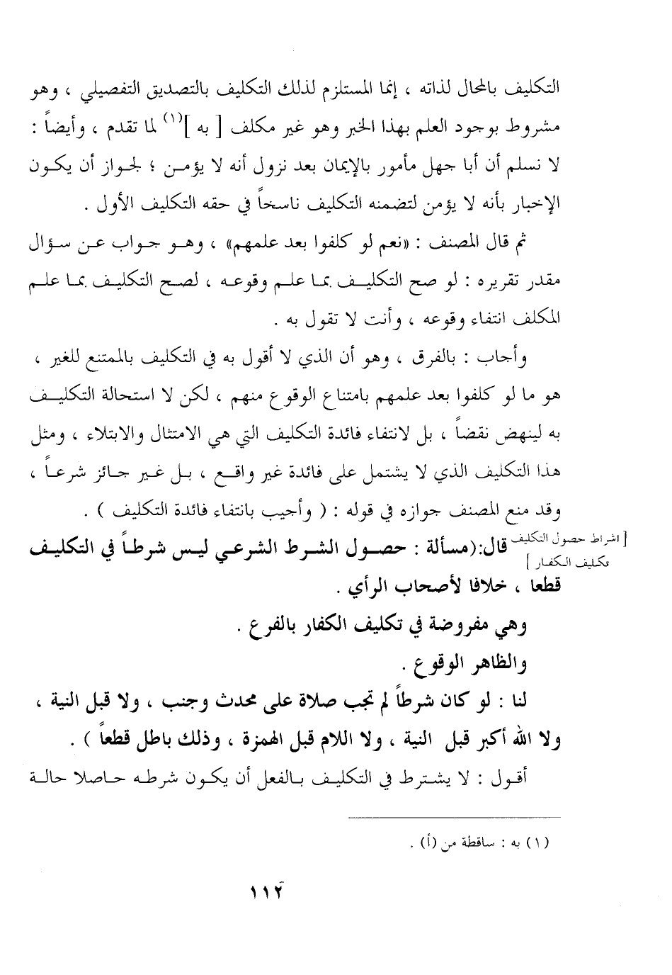 قال: (مسألة: حصول الشرط الشرعي ليس شرطًا في التكليف قطعا, خلافا لأصحاب الرأي.