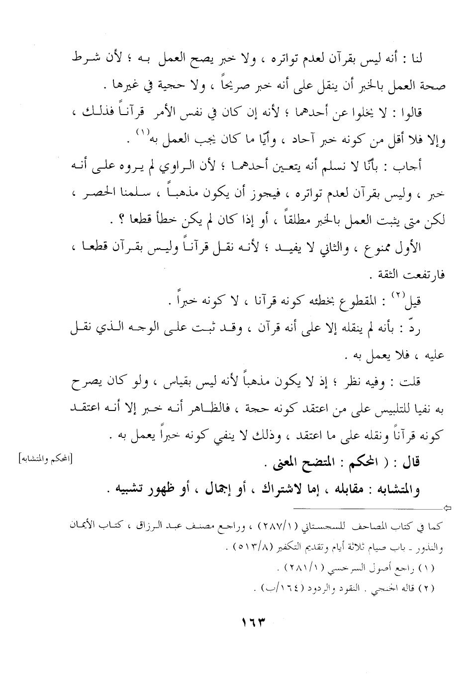 والمتشابه: مقابله, إما لاشتراك, أو إجمال, أو ظهور تشبيه.